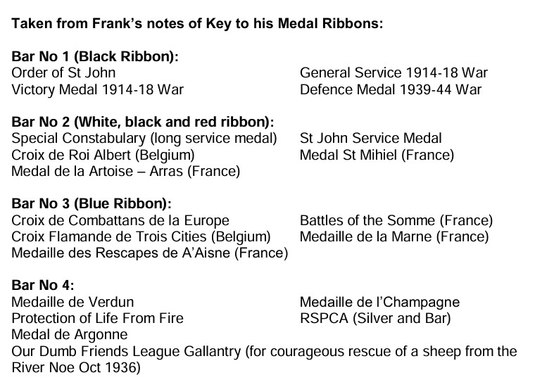 “He left a note of the Key to his Medal Ribbons which I had transcribed and have attached – he also volunteered with the St John Ambulance Brigade for many years”