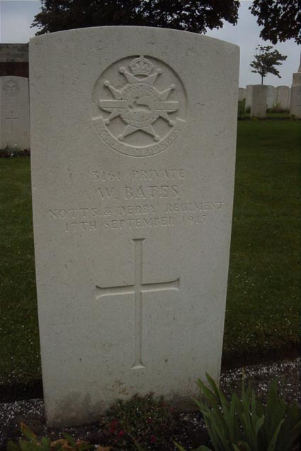 3161 Pte Walter Bates, a miner from Clay Cross, was killed in action in the field and buried at Chester Farm, which was the place for ‘trench casualties’ of the front line troops. He was the brother of 1578 Pte Peter Bates.