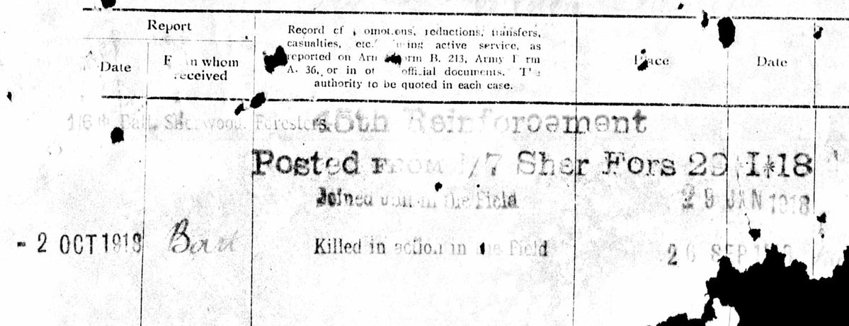 All four are buried in ROISEL COMMUNAL CEMETERY EXTENSION but it is likely that these are post-War reburials and the men were removed from Bernes Churchyard. In total 46 men of the North Midland Division who were killed between 21st and 29th of September were later reburied in Roisel Cemetery.