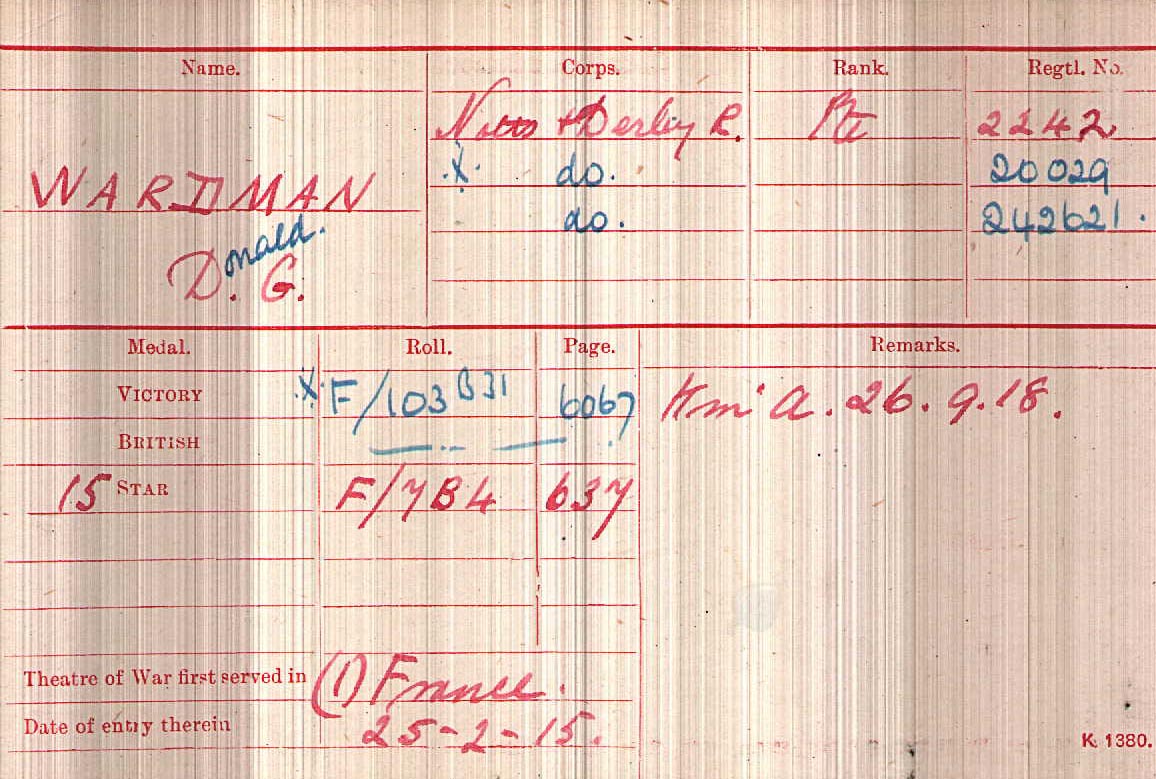 2242/242621 Donald Wardman aged 22 and from Mansfield.