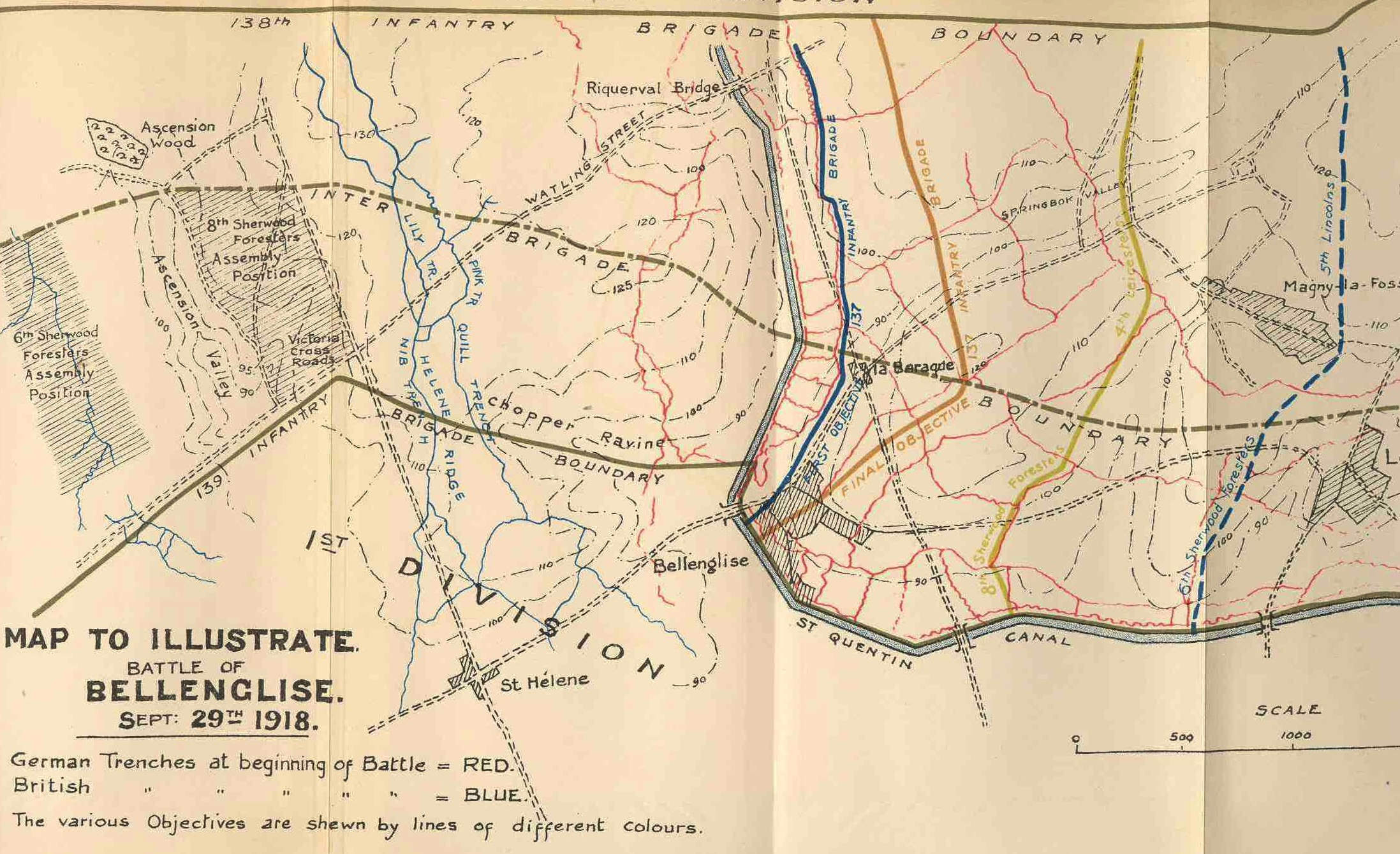 Much has been written about the storming of the Hindenburg line at Bellenglise by the 46th North Midland Division and the 1/6th Battn gallantly played their part.