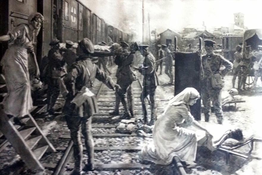 May 21st. Went to convent at 9 a.m. Left about 10 a.m. Rode to Clearing Hospital at Bailleul. Left rifle & equipment there & then to station. Left there at 1-15 in Red Cross train arr. St Omer 4-15 p.m. Boulogne 7-15 p.m. Nice dinner & tea on train. Saw 4 train loads of new troops. (K’s). Dull day. Left Boulogne 8-30. Etaples 9-30 for Rouen.