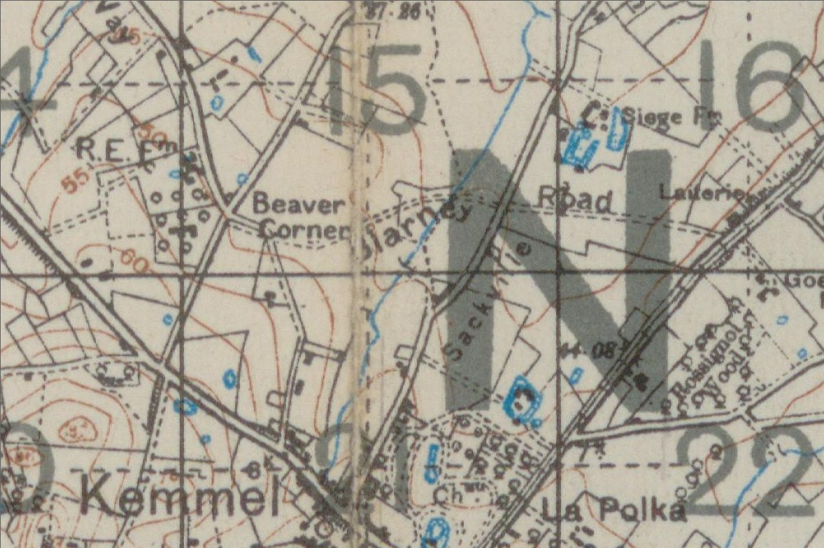 Siege Farm was located at N.16.c.2.8. on the road from Kemmel to Ypres (now the N331). Close by is La Laiterie Military Cemetery which was begun in November 1914 and named after a diary farm.