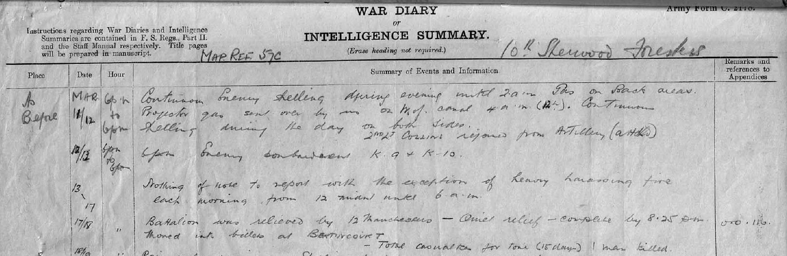 Thomas served overseas in the 1/6th (Feb ’15 – May ’16), 1/5th (Dec ’16 – June ’17) and 10th () Battalions.
