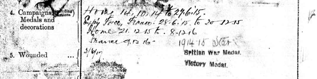 After returning to England he was re-posted to the 3/6th Battalion in January 1916 before being transferred to the 1/5th Battalion in December 1916. George would later return to France on the 8th December 1916 and serve overseas until the 19th October 1918.