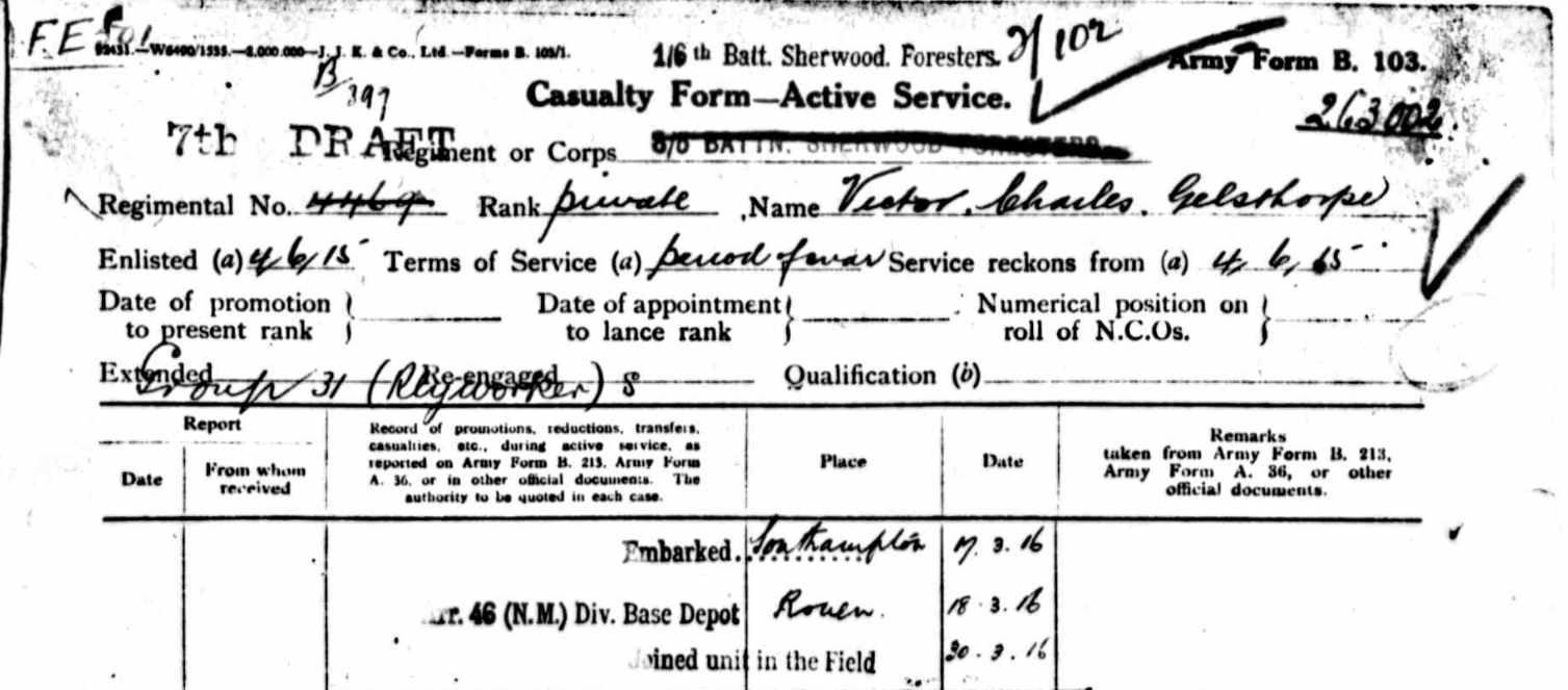 Some of these men arrived in France with the 7th Reinforcement, such as 4469 Pte Victor Charles Gelsthorpe :-