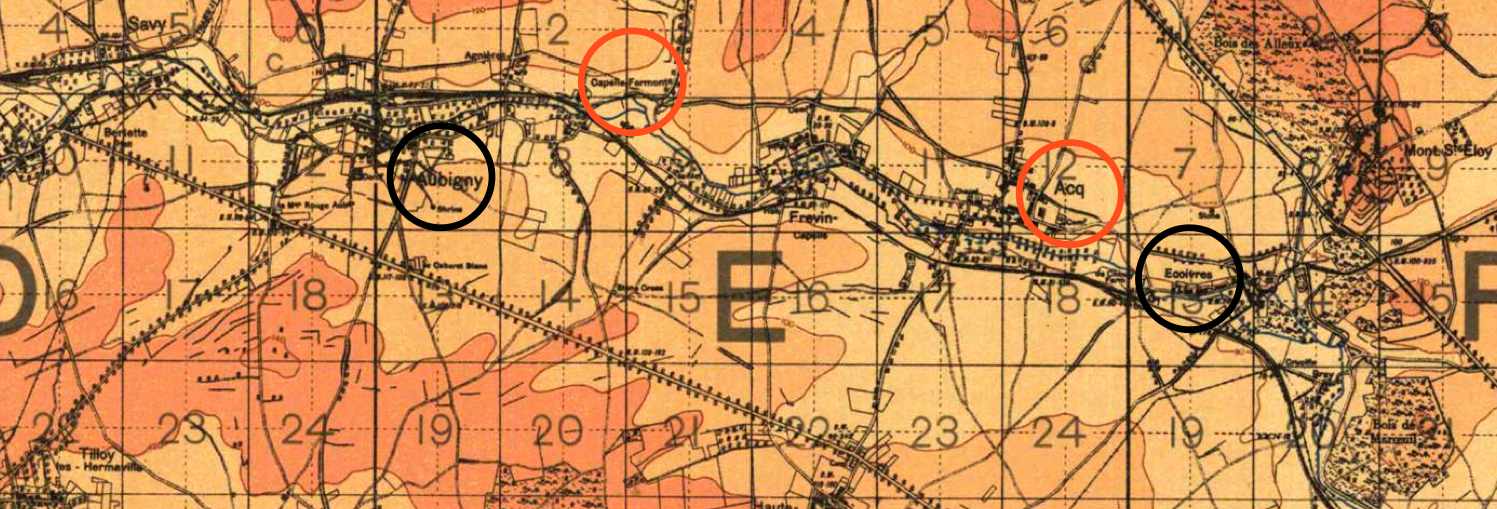 • Battn HQ C & D Coys & details MAROEUIL (Billets)
