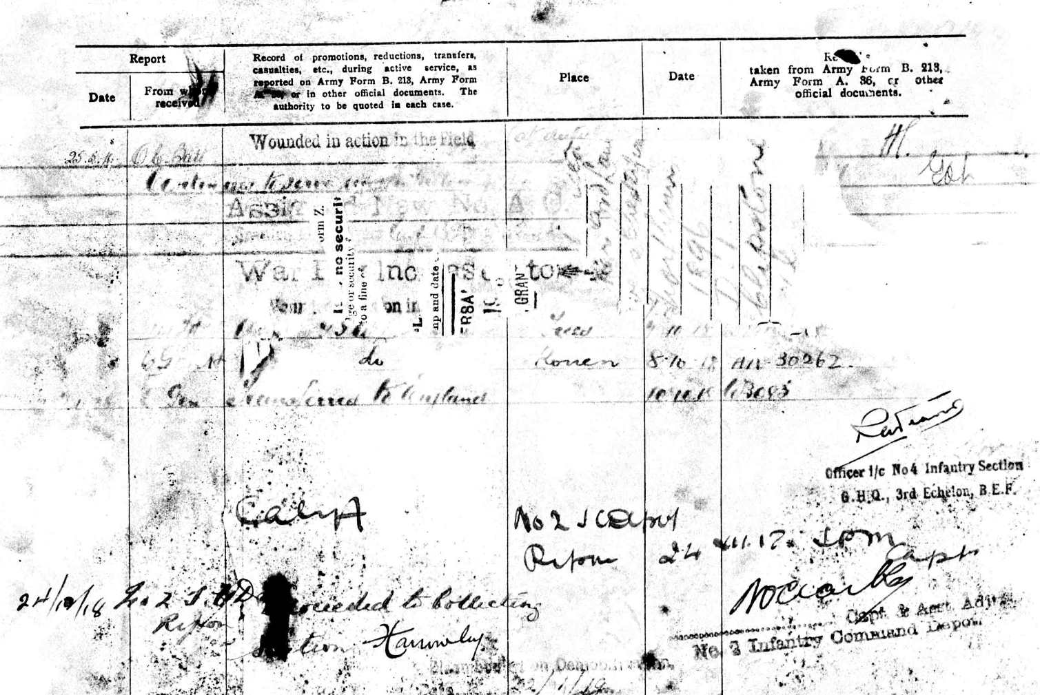 1522 Pte Benjamin Stubbins, a labour from Lockford Lane in Chesterfield and a Pre-War Territorial in A Company was wounded in action but remained at duty.