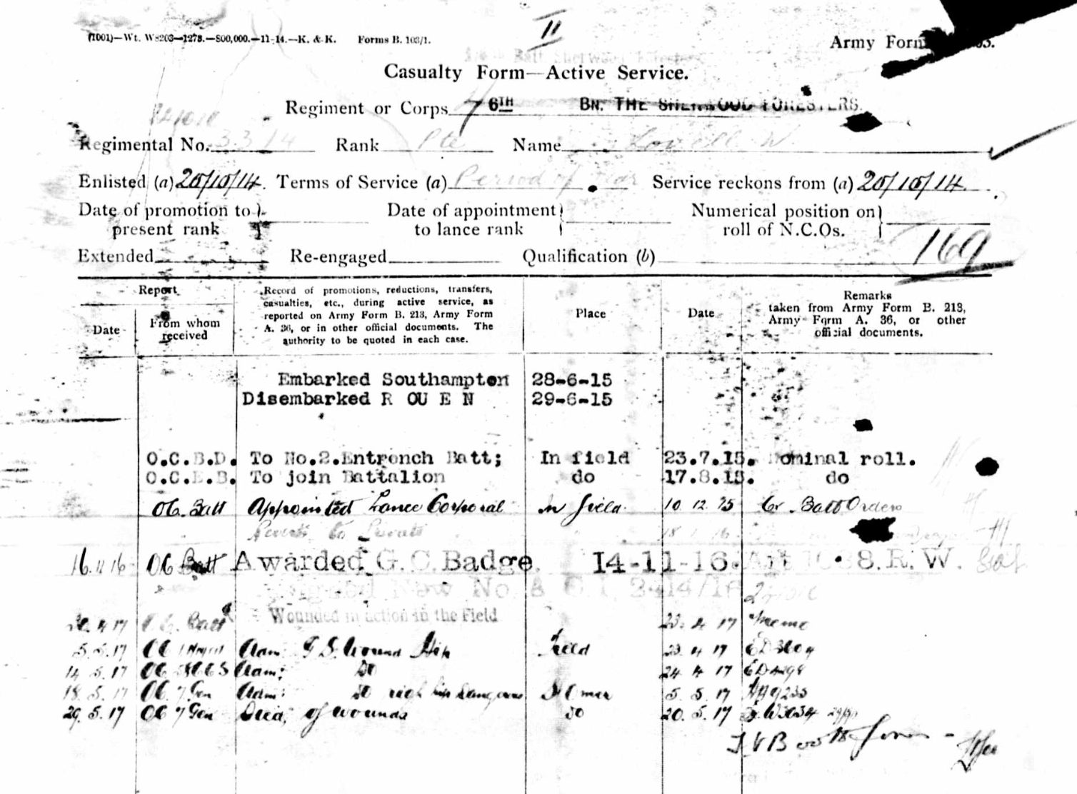 3314/241010 Pte William Lovell a gardener from Welwyn died of a gun shot wound received on the 23rd April during the attack on FOSSE 3 DE LIEVIN.