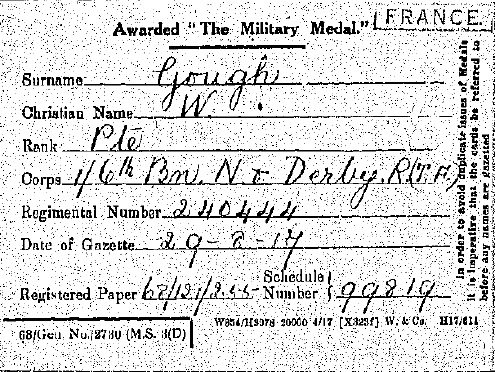 2158/240444 Pte William GOUGH Letter “B” Company awarded Military Medal for Gallantry on 1st July 1917.
