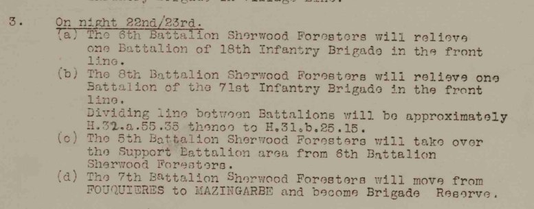 22.9.1917 HILL 70 RIGHT: Battalion relieved 2nd DLI and 11th ESSEX (4 posts) in front line.