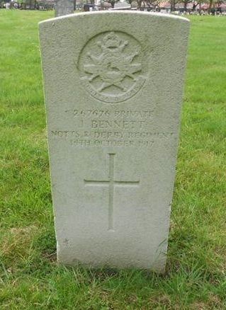 On this day 14th October 1917 Leave a reply 267676 Pte Joseph Bennett 2/7th Battalion (Robin Hoods) died of phthisis Joseph is buried in Worksop (Retford Road) Cemetery Share this: Click to share on Facebook (Opens in new window) Facebook More Click to share on X (Opens in new window) X Like Loading... Related