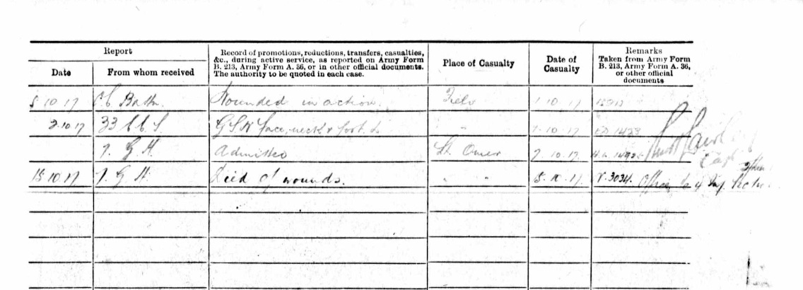 Harry retured to the 1/5th Battalion but suffered a GSW in the face and neck and died of his wounds 15 days later in the 7 General Hospital at St Omer. He is buried in LONGUENESSE (ST. OMER) SOUVENIR CEMETERY.grayston-1917