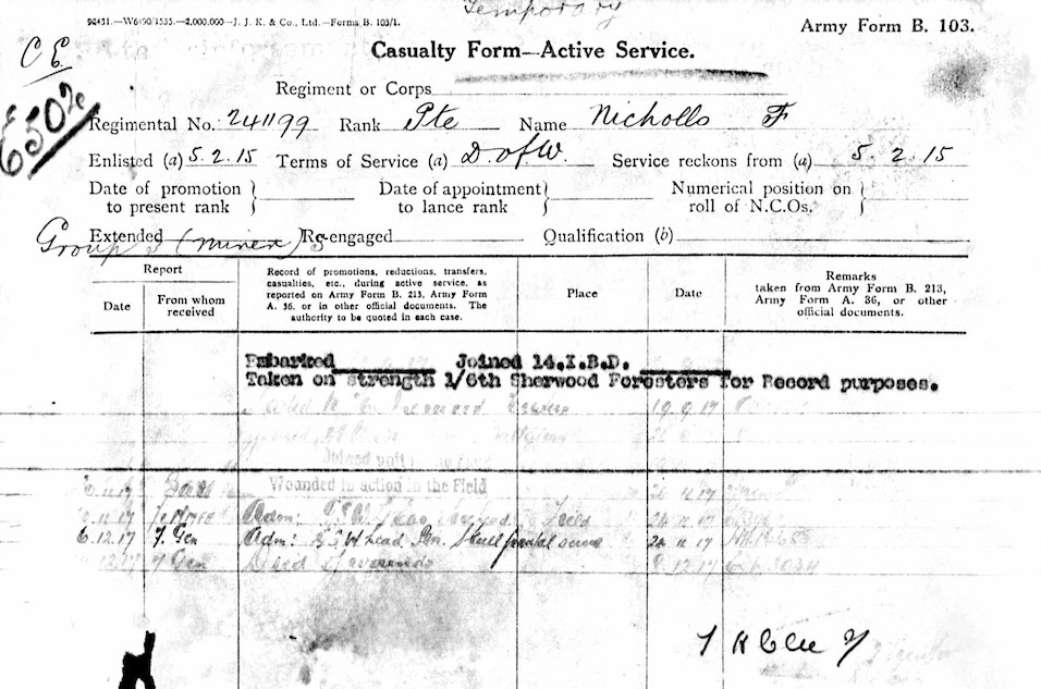8/XII/17: Hostile artillery fairly active and wing bombs active active against BOYAU 78 which is being extended for proposed operation. A daylight patrol under 2/Lt TA LAKE 6th SF entered hostile front line in G12c without encountering any of the enemy.