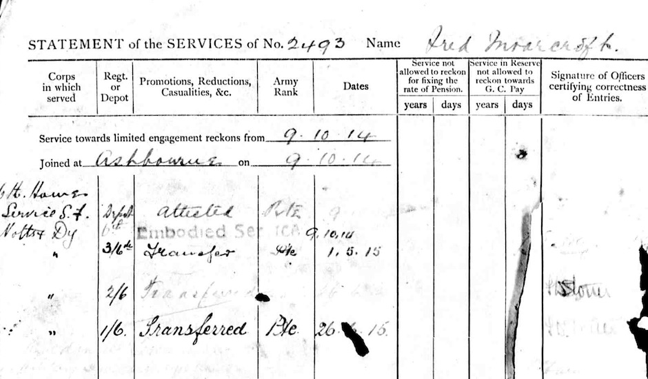 Fredenlisted in October 1914 and was an original member of the 2/6th Battalion. He was transferred to the 1/6th Battalion and arrived in France in June 1915. He had previously been wounded.