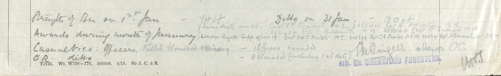 1/8th Battalion Casualties January 1918 Leave a reply Share this: Click to share on Facebook (Opens in new window) Facebook More Click to share on X (Opens in new window) X Like Loading... Related