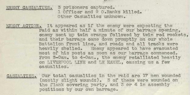 Although no men were reported killed on the patrol, the 1/5th Battalion did in fact suffer 3 men killed that day. It is not known if they had been mortally wounded on patrol.