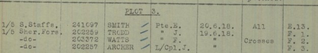 203257 L/Cpl John Thomas Archer killed 19/06/1918