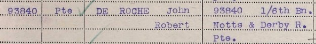 93840 Pte John Robert De Roche was the son of Charles Thomas and Christina De Roche of Monkwearmouth in Sunderland.