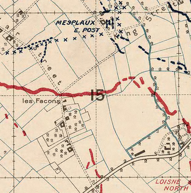 13.7.18: Quite day. Four patrols were out by night. Several of the enemy were seen standing to in posts in X15a.