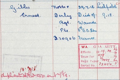 On this day 29th July 1918: Ernest Gibbs dies of wounds aged 21
