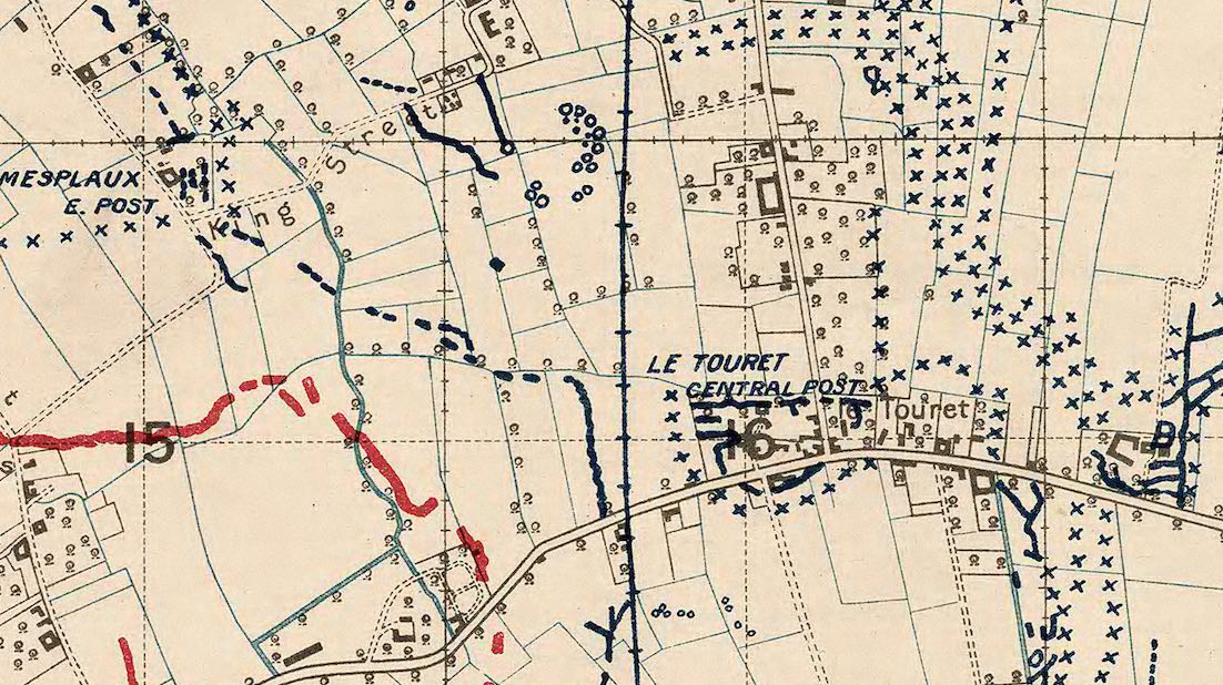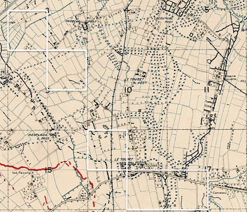 20.8.1918: Quite. By 9am posts were established along King Street from Canal at X.8.b.4.5. to X.9.c.5.7.