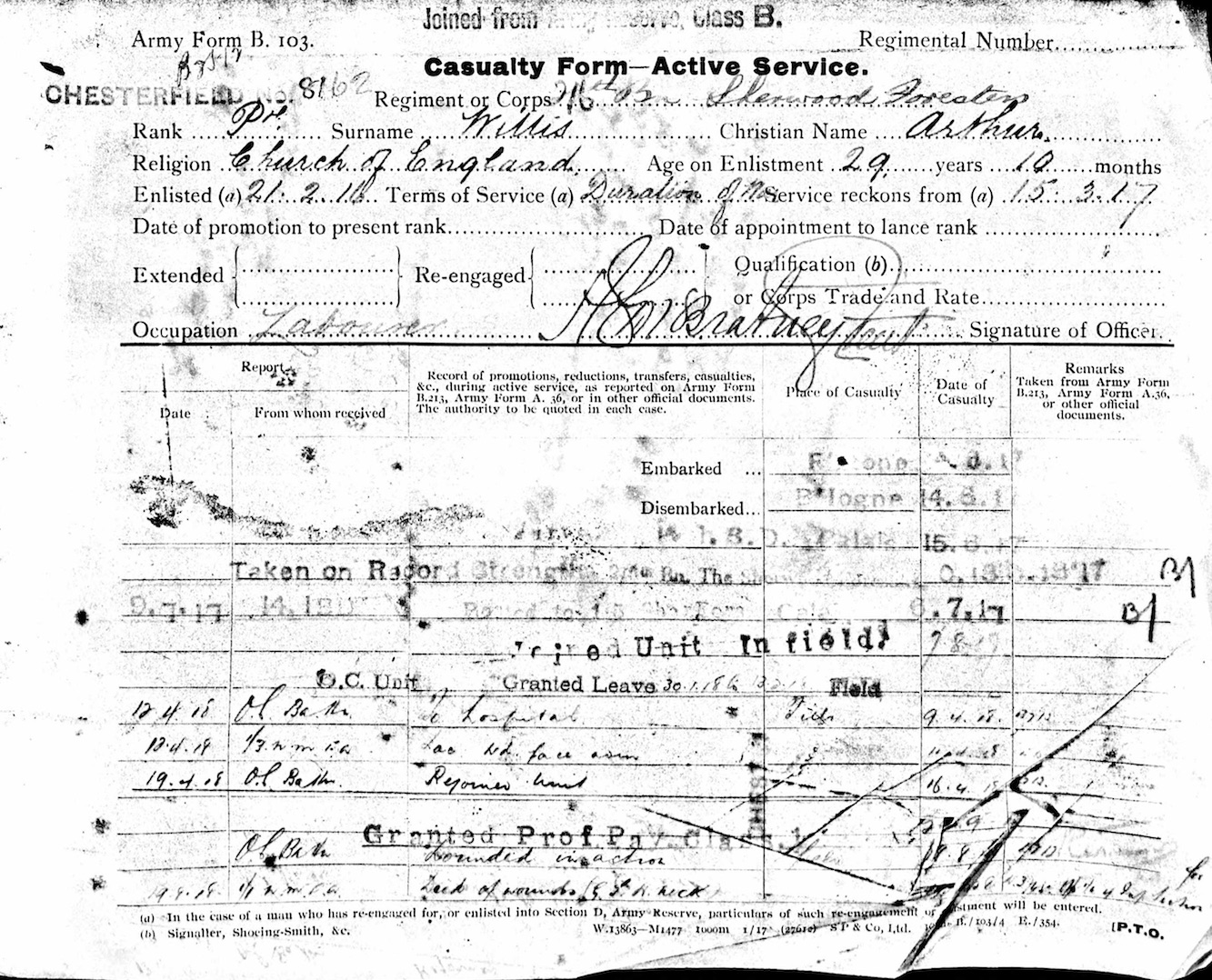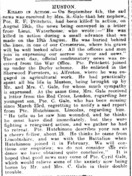 201253 Pte Reginald Cecil Pritchett from Nottinghamshire. See here