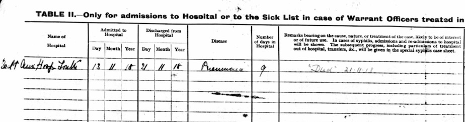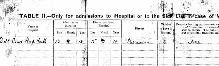 It would appear that the first cases of ‘influenza’ were contracted during the summer of 1918.