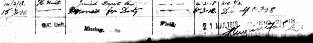 George and his comrades were in the front line trenches at dawn on 21st March when the Germans commenced their Spring Offensive.