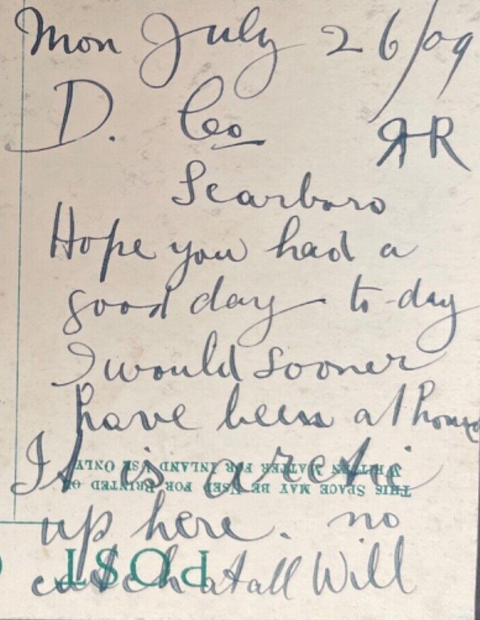 “Hope you had a good day to day. I would sooner have been at home. It is artic up here. No catch at all. Will”