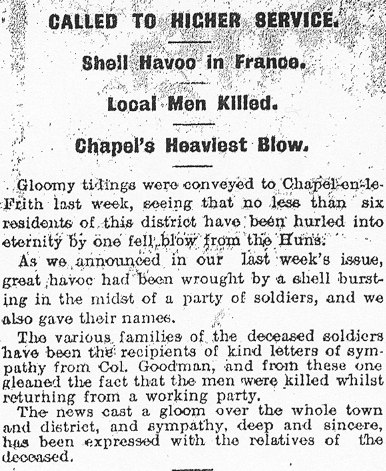 On 4th July a routine fatigue party 200 strong and under the command of Captain Edgar Heathcote marched to the front line, but came under heavy shellfire on the return journey:-