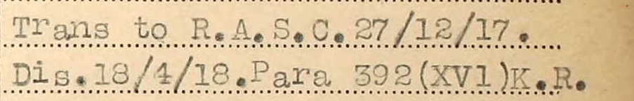 Enlisted in May 1915 and was in the 28th Reinforcement to the 1/6th Battalion in January 1917. Later served with the 5th Battalion and the Army Service Corps.