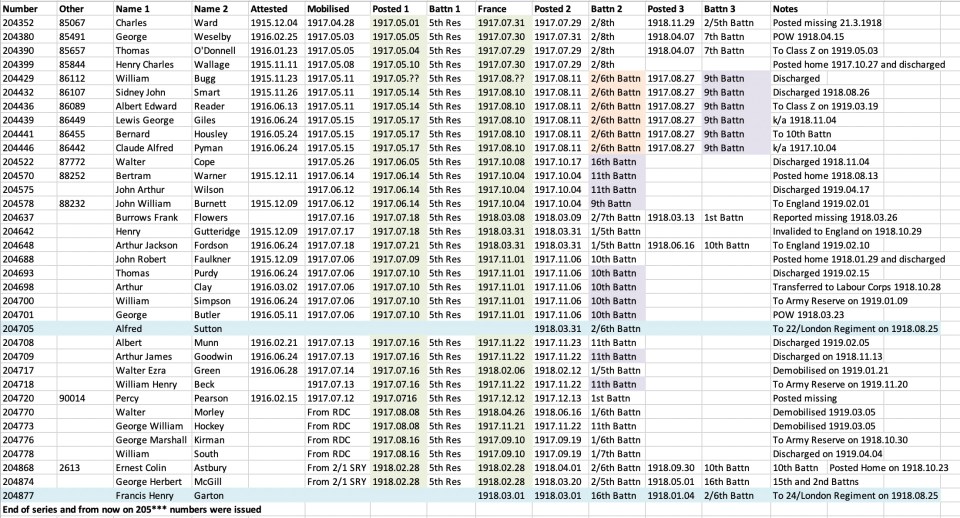 Regimental Numbering 1908-1918
