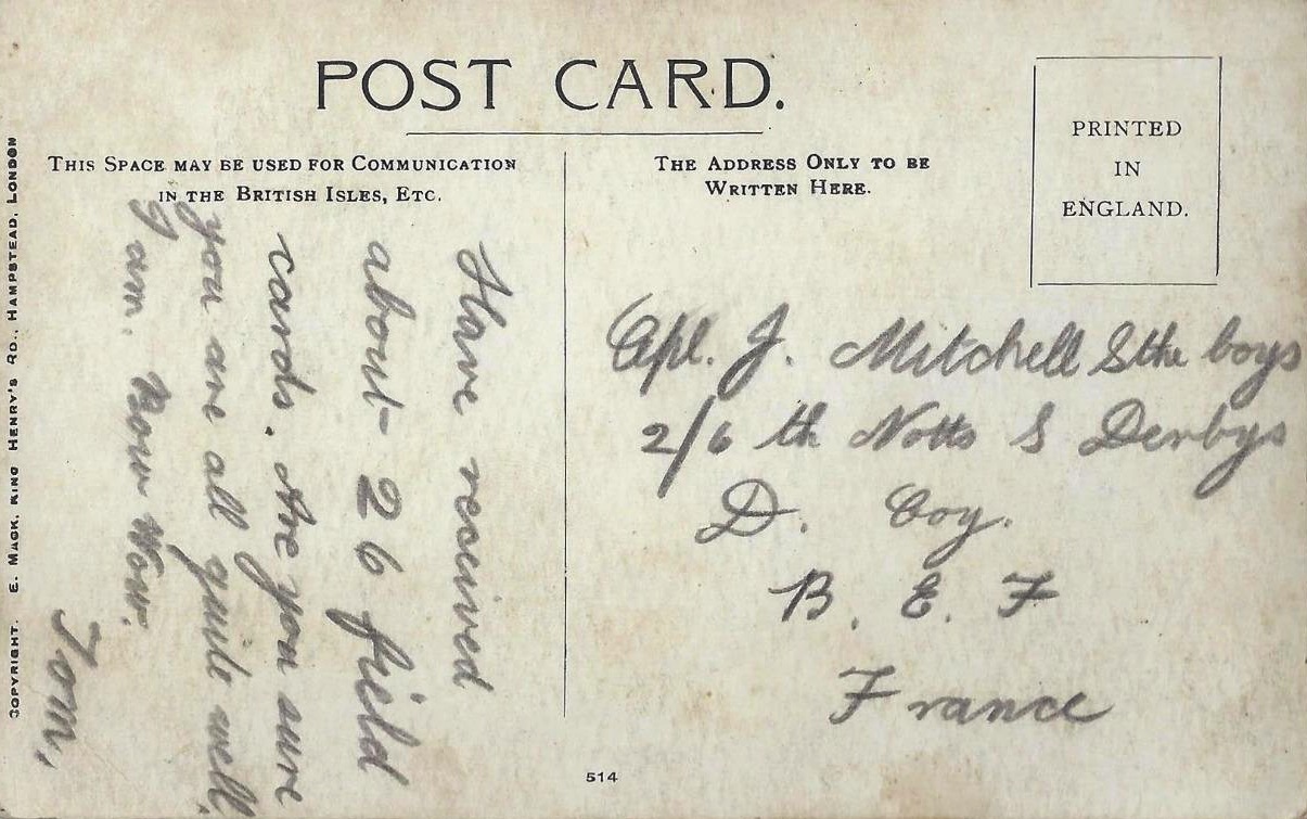 The 2/6th Battalion marched out of No. 6 Camp at Hurdcott (Fovant) on 25th February and proceeded to Folkstone where they proceeded to Boulogne