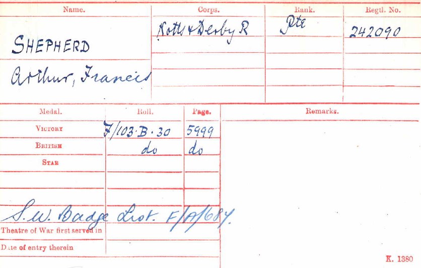 - A Derby Scheme man from London – 242090 Pte Arthur Shepherd