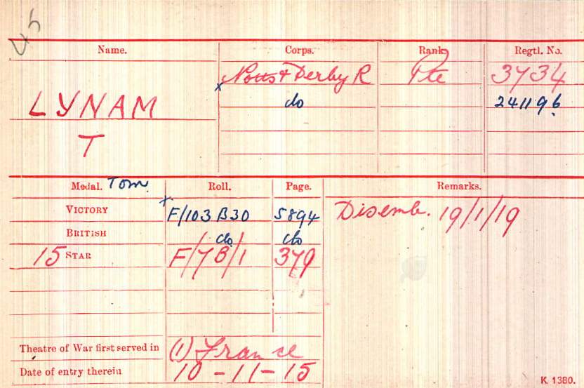 - A 1915 enlistment – 3735 Pte Tom Lynam