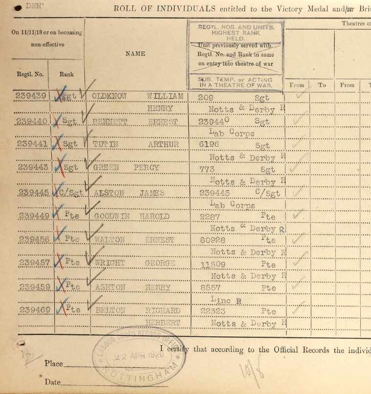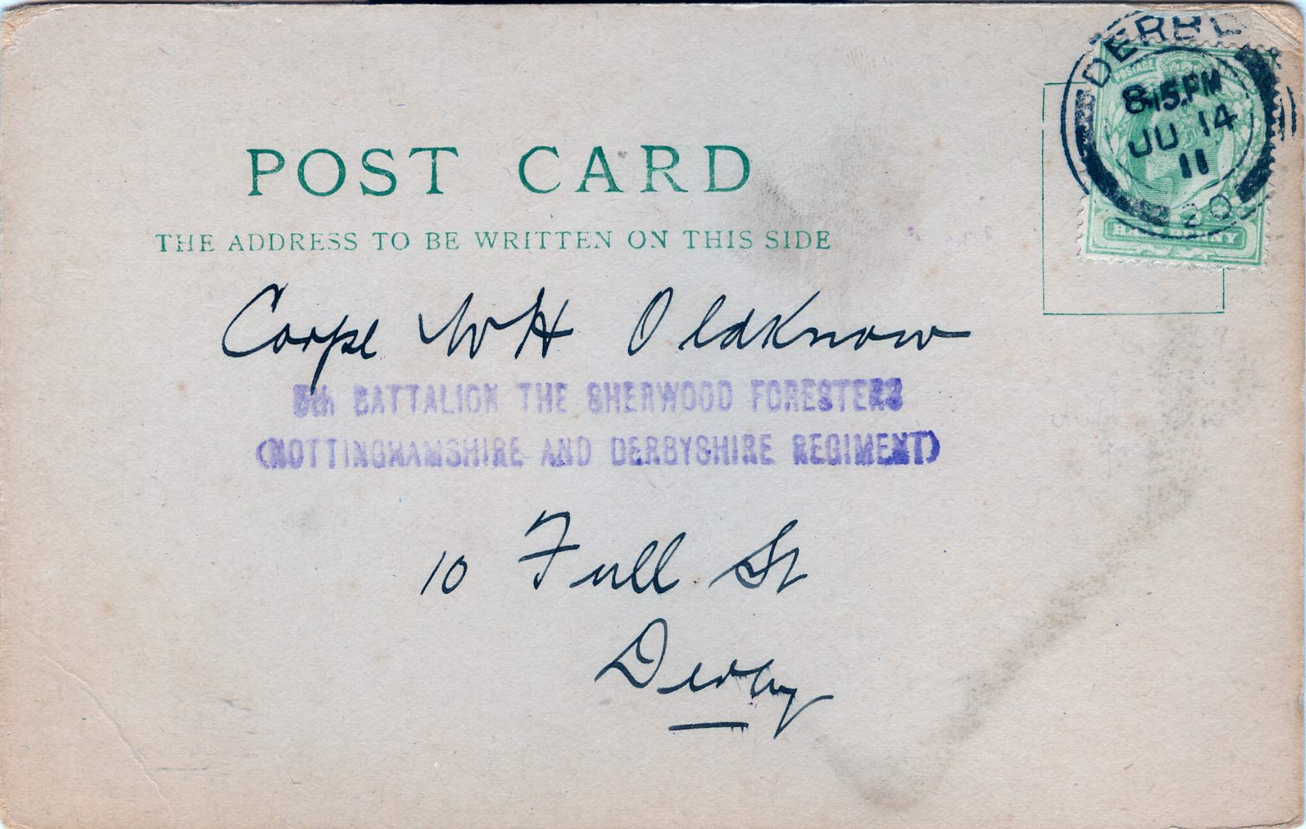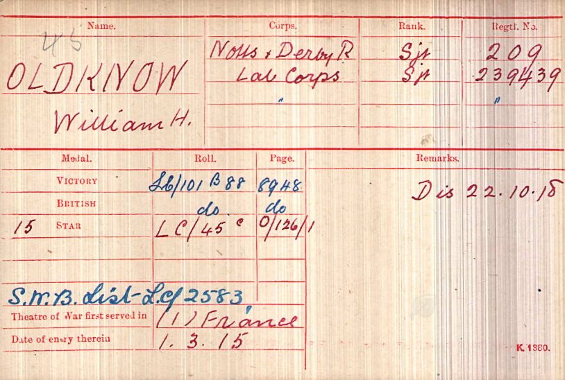 Arthur and William Oldknow 208/200012 Sergeant Arthur Oldknow A Rifle Volunteer and Pre-War Territorial who was killed in action on the 21st June 1917 209 Lance Corporal William Henry Oldknow A Rifle Volunteer and Pre-War Territorial who took part in the 1911 Coronation Parade Arrived in France in 1915 and later served with Labour Corps Share this: Click to share on Facebook (Opens in new window) Facebook More Click to share on X (Opens in new window) X Like Loading...