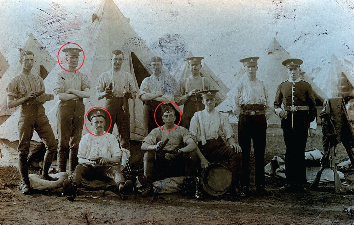 The War Diary for that period states “100 N.C.O.’s and men with previous Service were at once attested”; 2467 Thomas Ison, 2337 Bill Patrick and 2326 Jack Fielding were most likely amongst those men that joined up on the outbreak of War. This post card is part of the H.P. Hansen series and may have been taken at the annual camp in 1910.