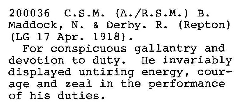 “In R.S.M. Maddock I found a R.S.M. after my own heart. He was excellent at all times, both as drill instructor and in the the line. I could not have wished better.”
