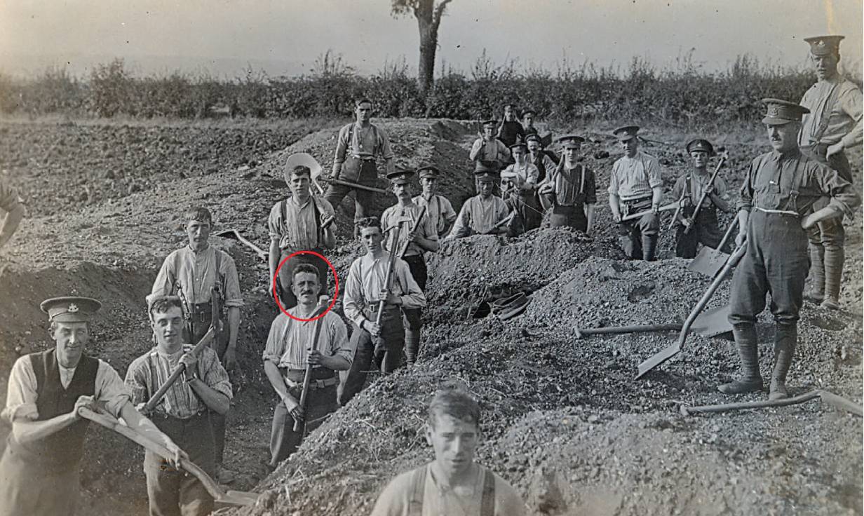 In this picture we see the men digging trenches which was a regular exercise at the annual training camps. The topography of the land suggests that this was taken at Scarborough in either 1909 or 1911. it.