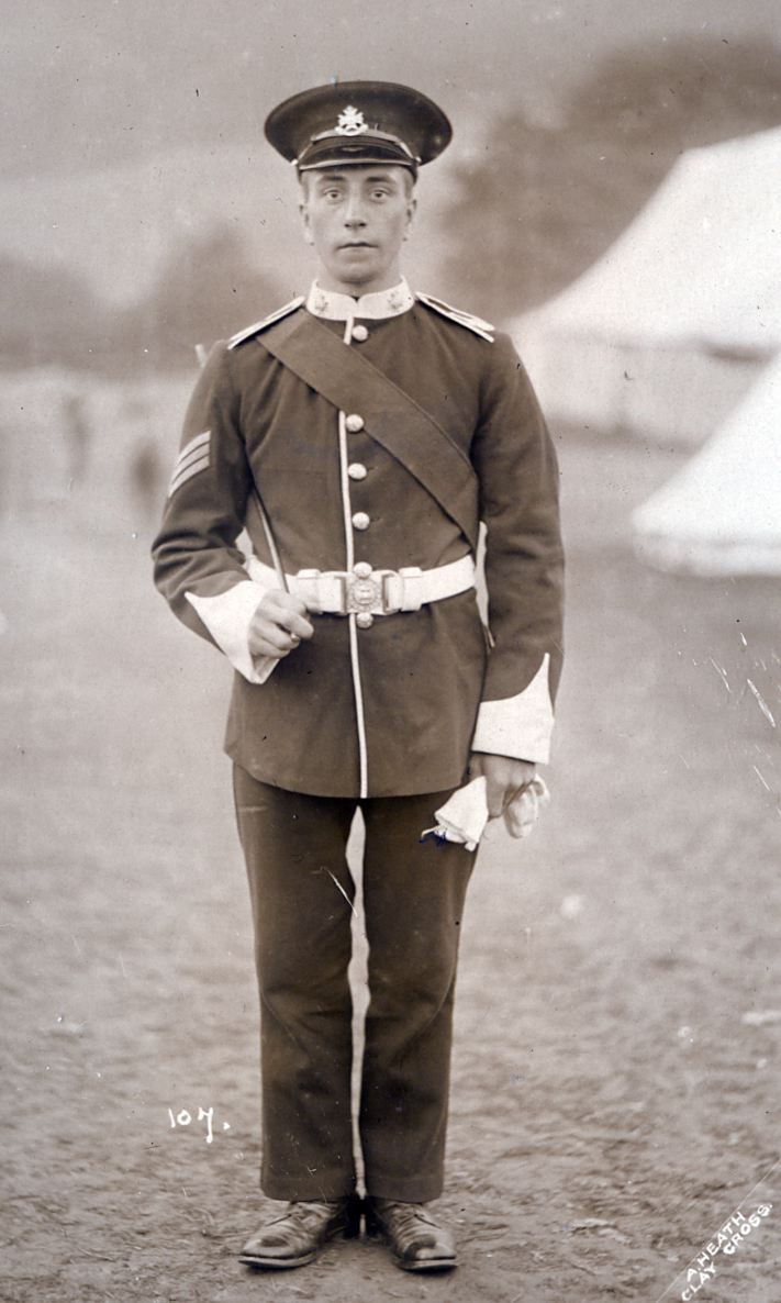 Shown in 1932 Regimental Annual as attended Small Arms School Netheravon 24th March 1932 (Distinguished (1st Bn). Shown In the 1933 Annual as being on strength of the 2nd Battalion as at 1st September 1933 and was with “D” Company No 13 Platoon ( CSM – shown in 1938 annual under “Boys of the Old Brigade” as being discharged to pension on the 20th November 1935. Enlisted in the 5th Btn on the 22nd October 1908 and mobilised as Col/Sgt “H” Company in 1914 serving with the 5th Btn throughout the war.