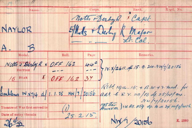 At the end of 1917 he was invalided to England and finally disembodied on the 10th February 1919; nearly 4 years since he had left England with the 5th Battalion Notts & Derby Regiment to join the British Expeditionary Force in France.