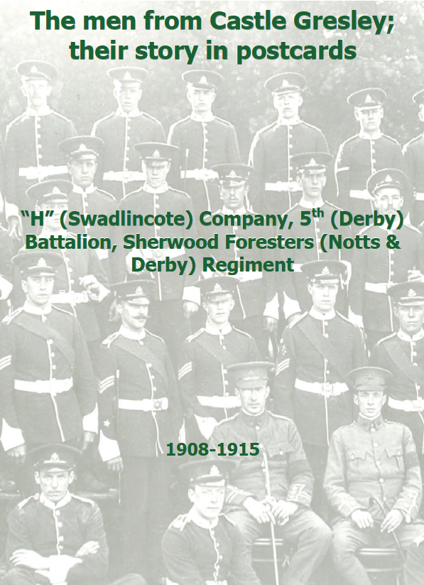 Letter “H” Company, 5th (Derby) Battalion, the Sherwood Foresters (Notts and Derby) Regt were headquartered at Swadlincote Drill Station. In addition, various sections were also found in the outlaying villages and this was the case for the Castle Gresley section of “H” Company, which was established at High Cross Banks, whilst yet another section was stationed at Repton Drill Station.