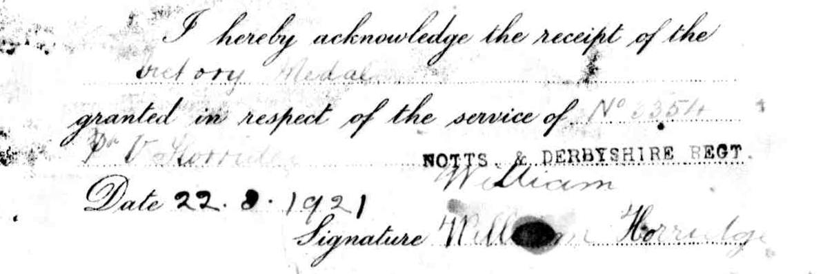 Horridge attestationVincent Horridge from 13 Belvoir Street, Ilkeston enlisted into the 5th (Reserve) Battalion Sherwood Foresters on the 4th November 1914 aged 23 years and 6 months.