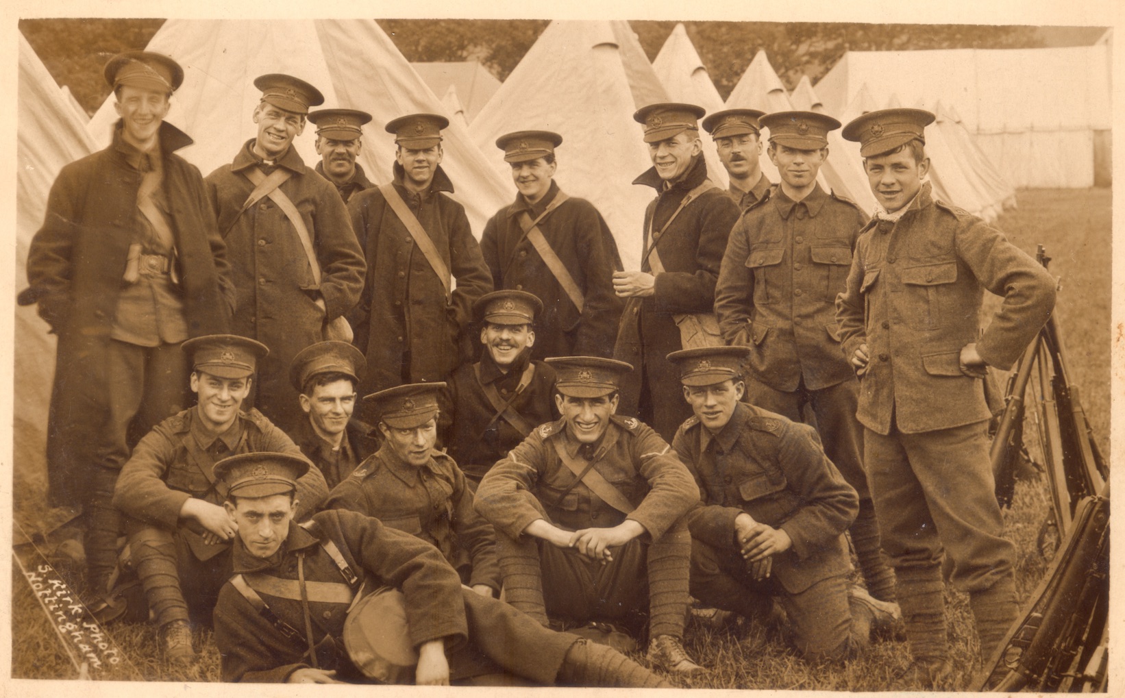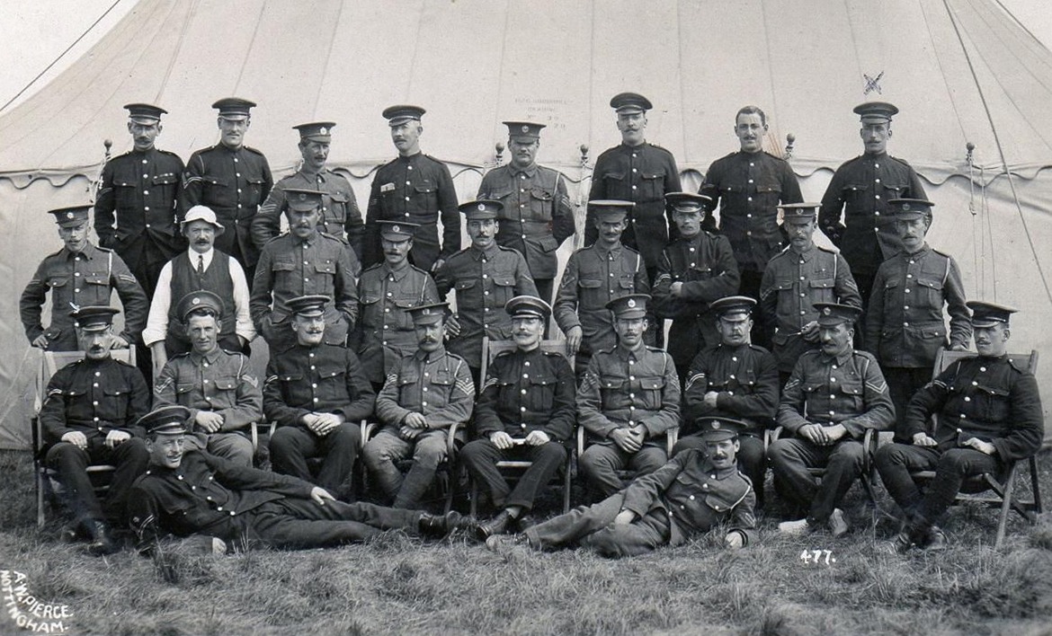 Show Officers and men of the Robin Hood Rifles and taken by A. W Pierce from Nottingham.