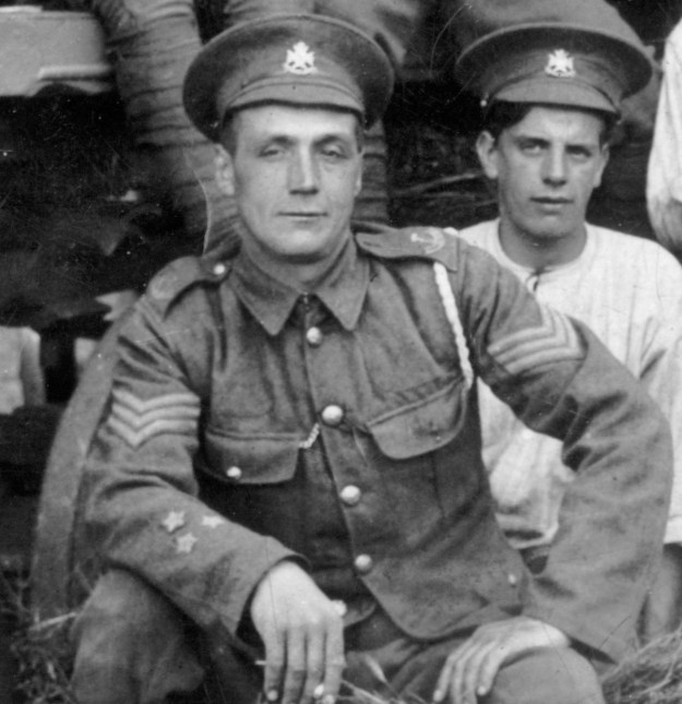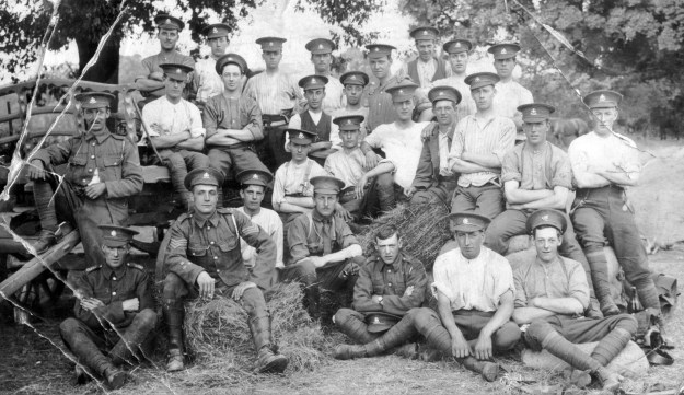 “We are not leaving nomansland (?) until the 30th of the month and they are going to give us a short week end next week I think, but they are sending half of us home on Monday. This is the transport we look a nice lot don’t we just.”