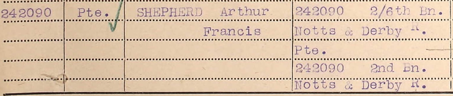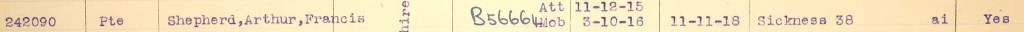 Very little is known about Arthur’s service in France. It is possible that at some point he was wounded and transferred to the 2nd Battalion after recovery.