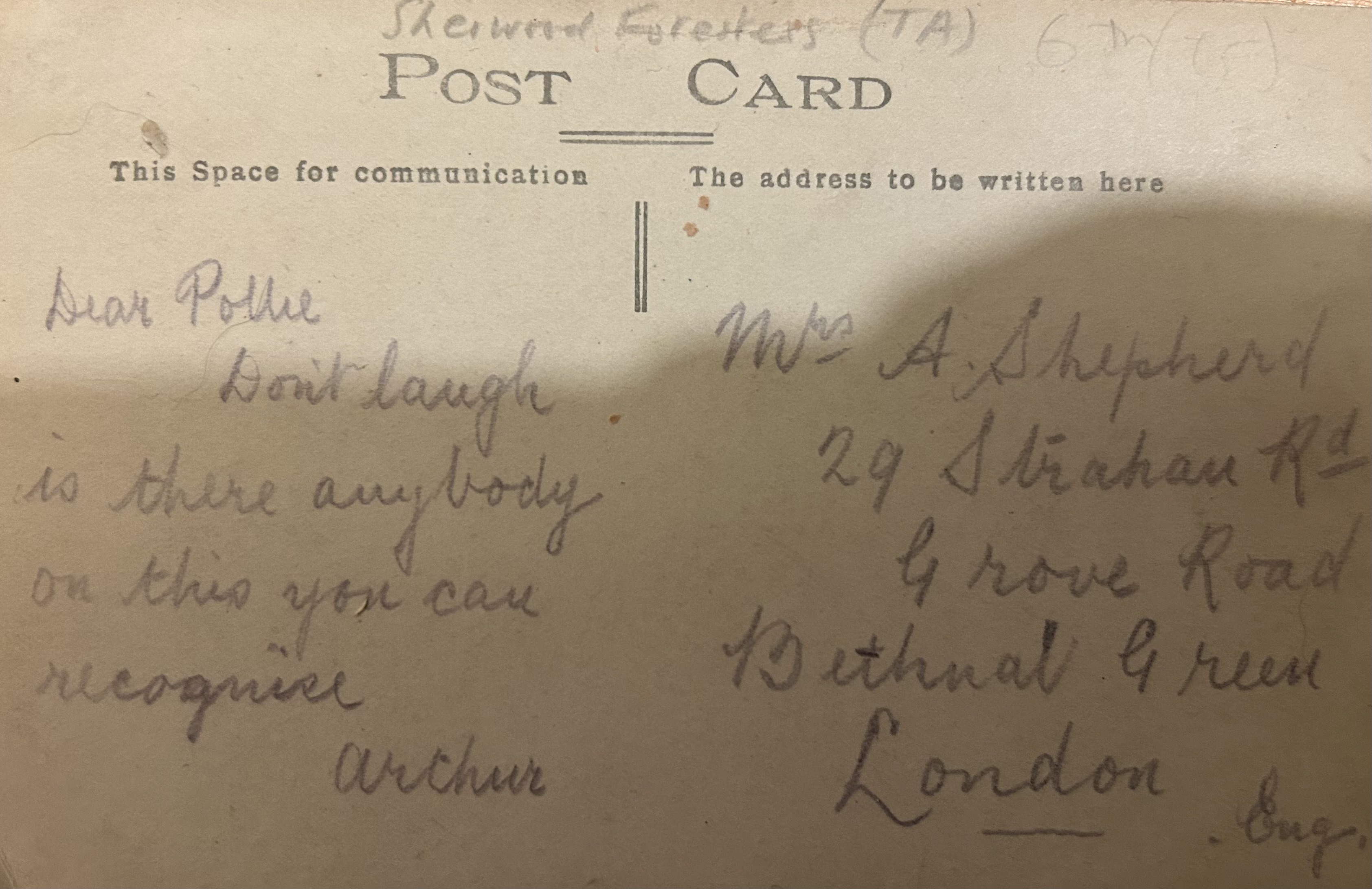 Post card sent from Harry to his wife Gladys while he was stationed in Harpenden