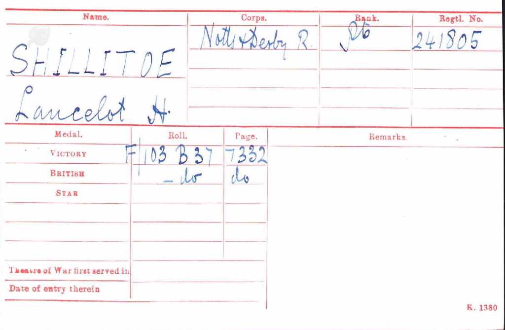 Enlisted in early June 1915 and arrived the Battalion in France in March 1916.