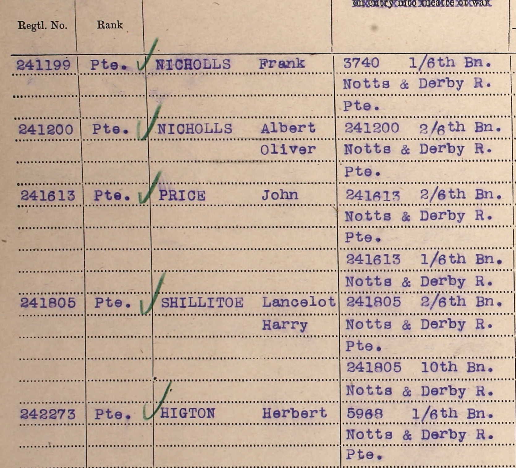 Killed in action on the 3rd September 1916 whilst serving with the 17th Battalion, the Welbeck Rangers